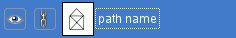 An “open eye” icon if the path is visible, or a blank space if it is not. “Visible” means that a trace of the path is drawn on the image display. The path is not actually shown in the image pixel data unless it has been stroked or otherwise rendered. Clicking in the eye-symbol-space toggles the visibility of the path.