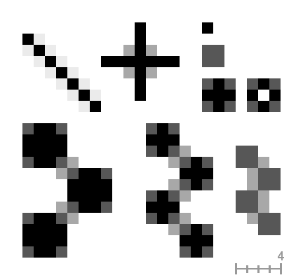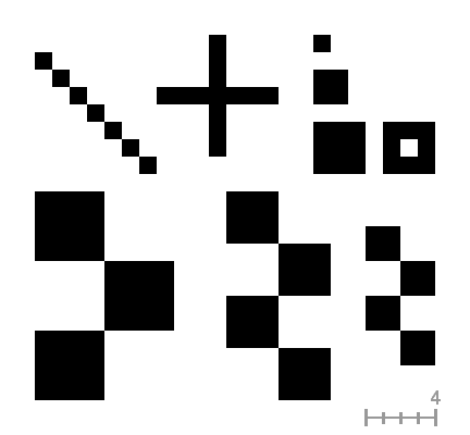 The following examples illustrate the effect on some patterns. The small squares are one pixel in size (zoom 16:1).